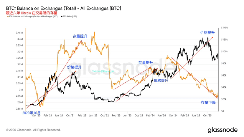 The stock of Bitcoin on exchanges does not have a direct impact on price, which is inevitable. Many times, a single sell-off of more than 500 $BTC can affect the price, especially on weekends and holidays. There are still over 2 million BTC in the exchanges, so I have said many times that the stock on exchanges does not equate to the rise or fall of BTC prices.