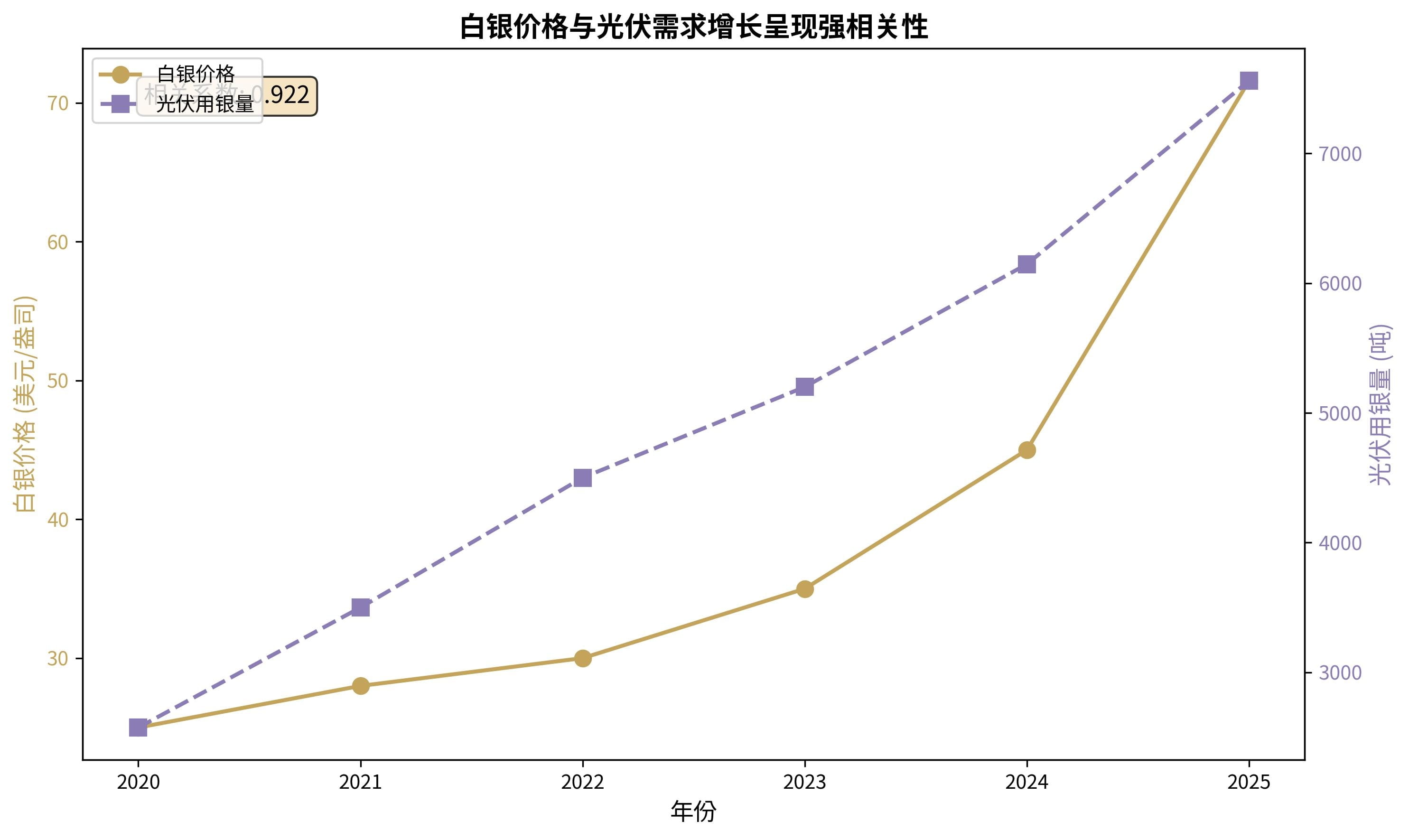 The correlation coefficient between silver prices and silver usage in photovoltaics is as high as 0.983, nearly indicating a complete positive correlation, showing that the growth in photovoltaic demand is the core factor driving silver prices up.