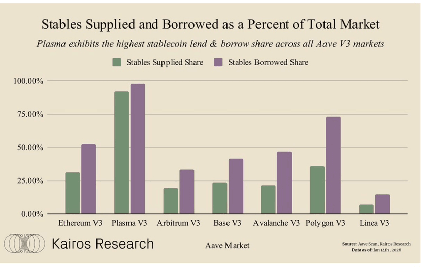 In terms of ecology, Plasma has been very active lately. CoW Swap is up, offering MEV protection + zero gas for exchanging tokens; major exchanges like Kraken and Binance support Plasma USDT; there's also the Euro stablecoin EURØP, which earns yields through Upshift. The syrupUSDT pool's TVL exceeds 1 billion dollars, with absurdly high lending efficiency. Maple Finance has also put institutional-level assets on-chain. In short, the liquidity is astonishing, with the highest stablecoin supply/lending ratio globally.