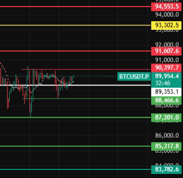 Today, pay attention to the position of 89350 for Bitcoin. As long as it does not break this position on a pullback, the 1-2 hour level will continue to rebound, and the upward pressure levels to watch are around 90400-91600-93300!