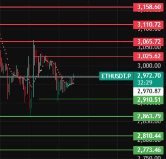 Today, pay attention to the position of 2970 for Ethereum. Only if it stabilizes above this position for 1-2 hours can it start to rebound, and the upward pressure levels to watch are around 3025-3065-3110!