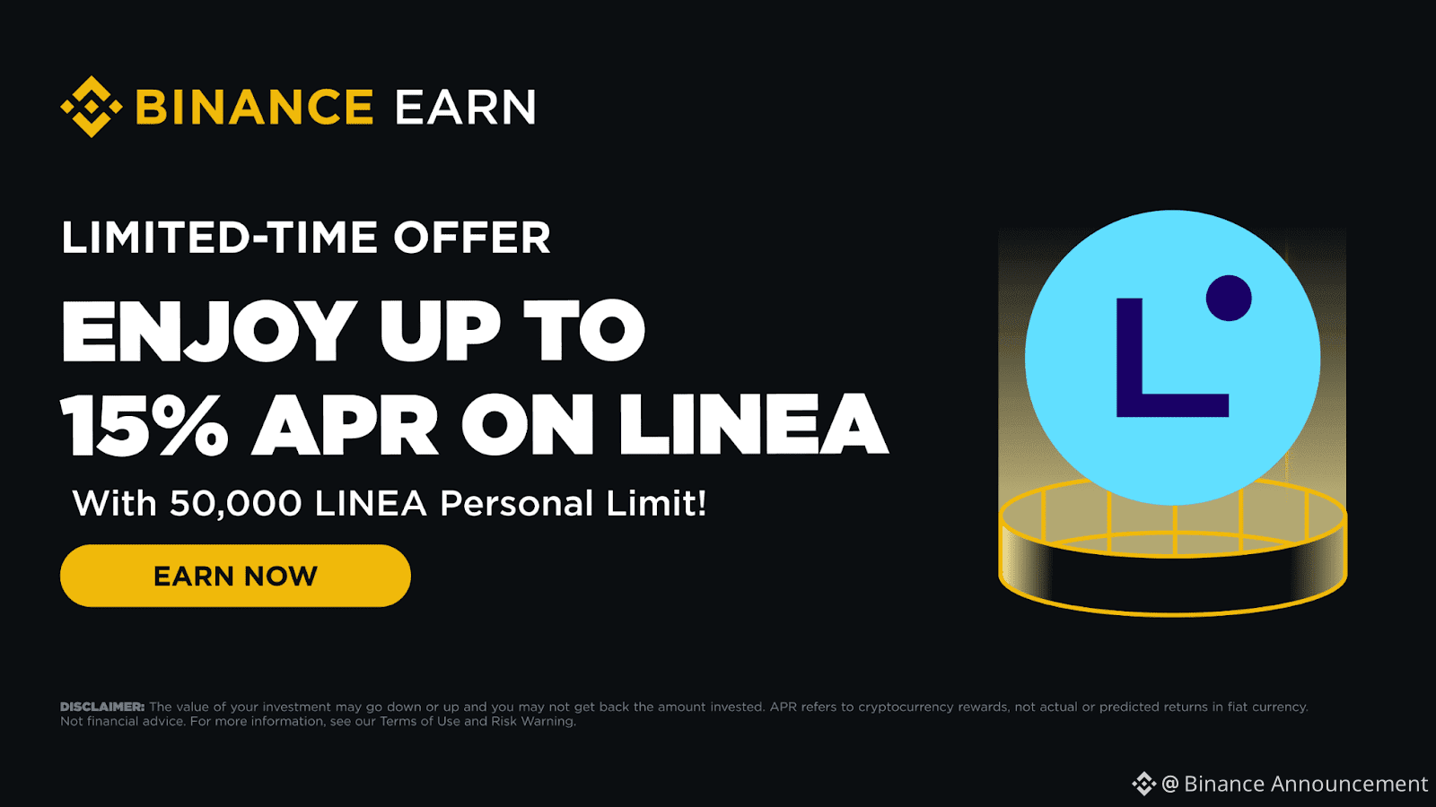 Binance Earn is pleased to announce a promotion for LINEA Simple Earn Flexible Products! During the Promotion Period, users who subscribe to LINEA Flexible Products may enjoy up to 15% APR, including exclusive Bonus Tiered APR on top of Real-Time APR rewards.
