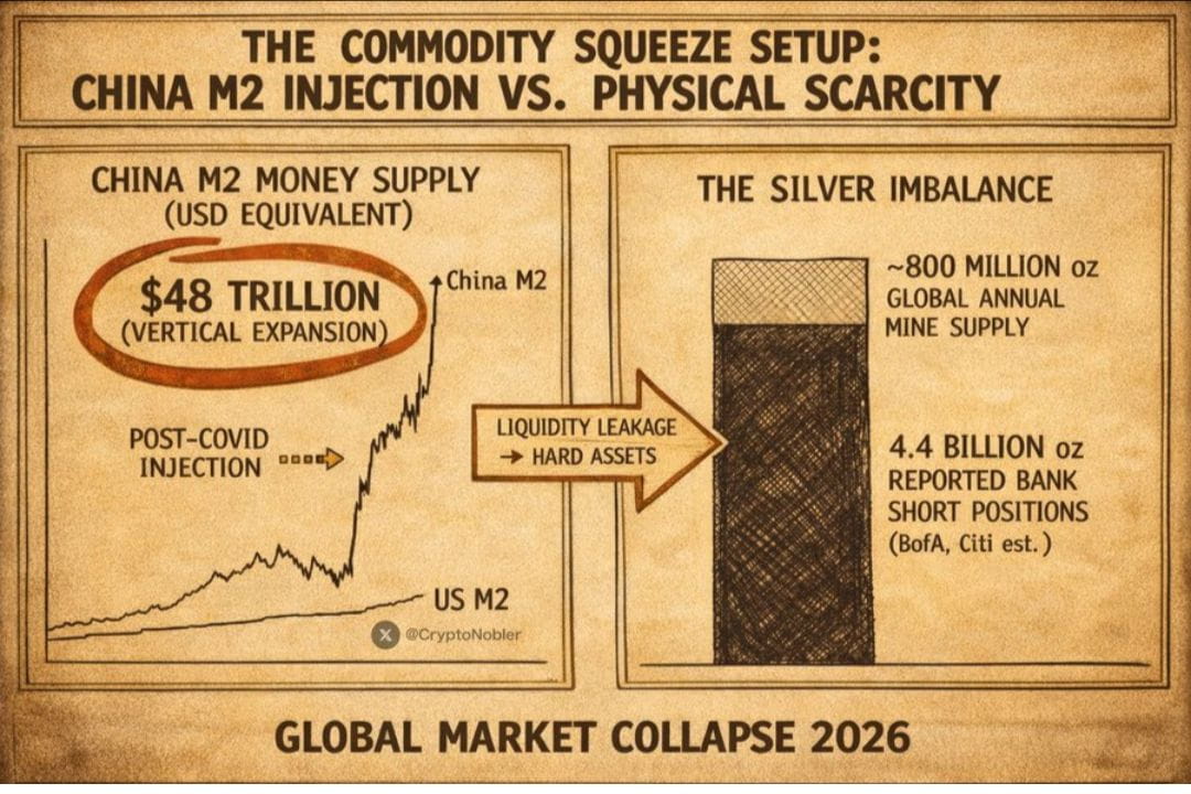 If silver starts moving, pushed by Chinese demand (solar, EVs) + currency debasement - shorts get squeezed.