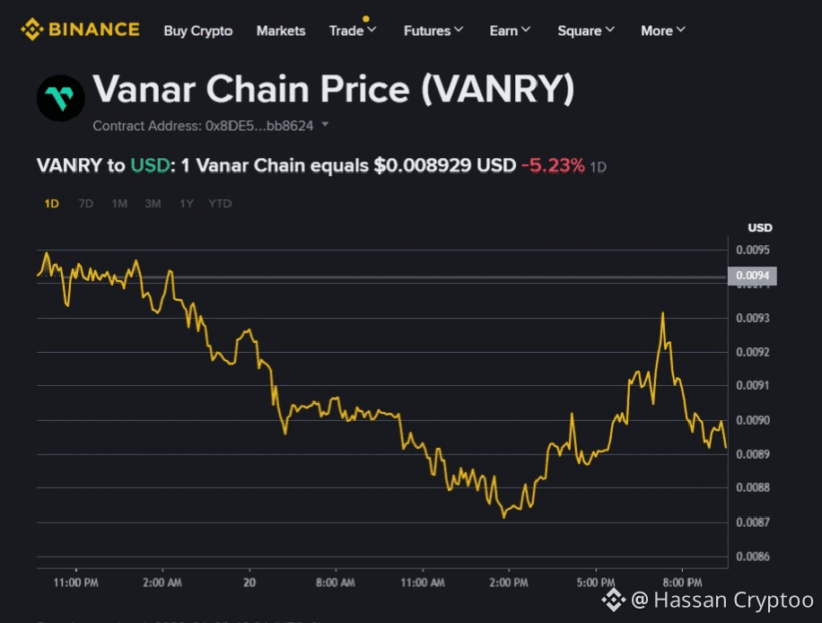 A look at the VANRY token's provides me insight into its ecosystem's momentum. Currently trading at $0.0084 on Binance Spot, its marketcap stands near to $18.8 million. The daily trading volume shows consistent liquidity, absent the wild volatility common to hype-driven coins. On Binance, the chart creates a consolidation pattern in weekly time frame, recently it was highly volatile as well. It is trading below its all time high, which is not uncommon for projects building through a bear market phase. What stands out to me is the correlation, or current lack of a strong one, with broad AI token hype. This relative stability might reflect the market's slower digestion of infrastructure level value versus application level hype. The token's value proposition is tied to the sustained usage of Vanar's suite, a compound effect that differs from the spike and fade cycles of narrative coins.