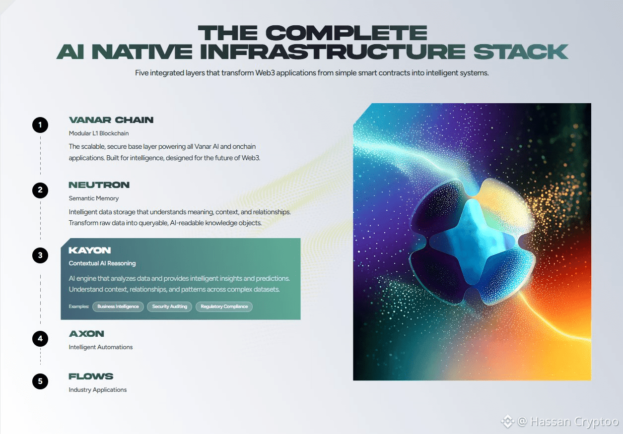 Vanar Chain positions itself as an L1 designed for mainstream adoption, with verticals in gaming, entertainment, and AI. The key differentiator I see is its "AI first" mentality, which the team articulates as moving beyond AI as a feature. This philosophy is crystallized in live products. Take Kayon, which their ecosystem page highlights as an "On chain Reasoning Engine". In a landscape obsessed with inference speed, Kayon addresses a more fundamental, and often overlooked, problem for on chain AI, explainability. When an AI model makes a decision or generates content on chain, how can a user or a smart contract audit the logical steps it took. Kayon's architecture, as implied by its function, seems to provide a verifiable trail of the AI's "thought" process. This transforms AI from a black box oracle into a transparent participant. It is a foundational primitive. Without it, trust in autonomous on chain actions remains brittle, limited to simple, pre defined triggers. Kayon makes complex, logic based AI decisions auditable, which is non negotiable for enterprise or regulated use cases.