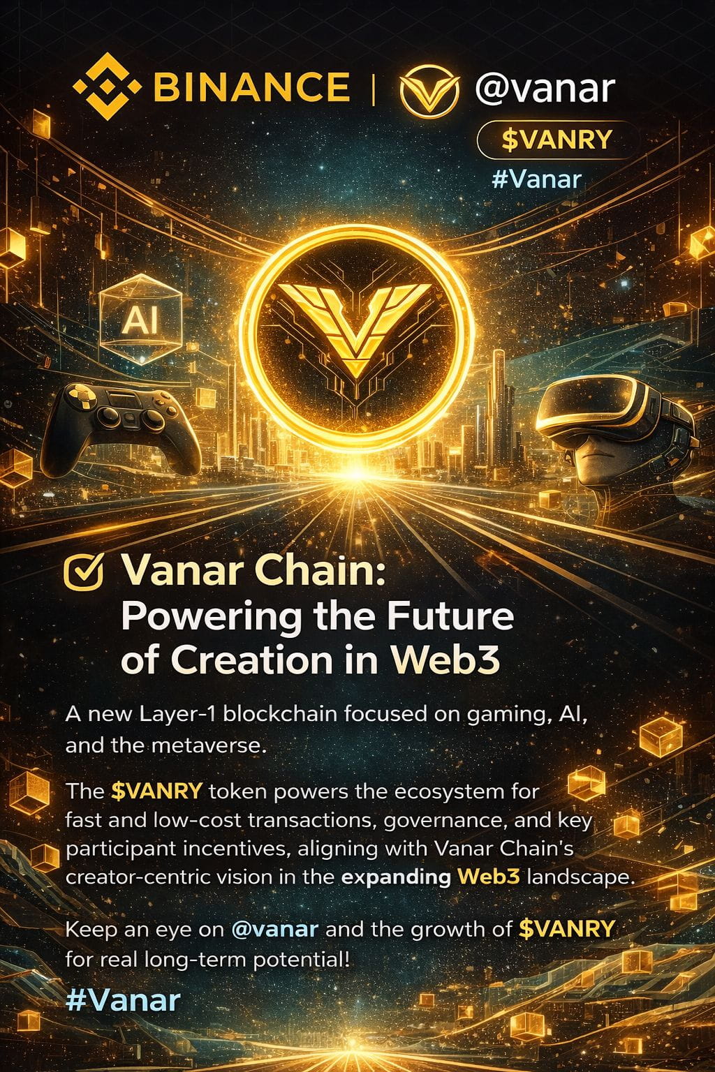 The $VANRY token plays a key role in powering the ecosystem, enabling transactions, governance, and participation across the network. As blockchain adoption grows, platforms that prioritize usability and creator freedom will lead the space, and Vanar is clearly positioning itself in that direction. From NFTs to advanced virtual worlds, the Vanar ecosystem is built for long-term value rather than short-term hype. Keeping an eye on @vanar and the growth of $VANRY feels like watching the future of Web3 being built step by step. #Vanar #Binance