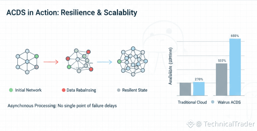 When we talk about Walrus we are talking about a giant decentralized storage locker. Unlike a normal company that keeps your files on their own private servers Walrus spreads your data across many different computers. To make this work smoothly we use ACDS. This is basically a set of rules that makes sure your data is always reachable even if some of those computers break or try to act sneaky.