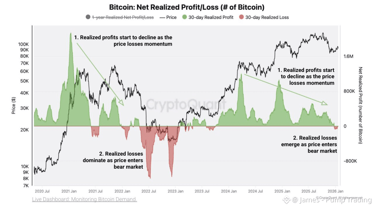 Net Realized Profit and Loss is showing a clear shift. Bitcoin investors are beginning to sell at a loss.