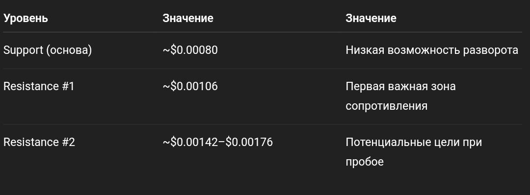 If the price holds above the level 0.00080–0.00085💲, this may serve as a basis for an attempt to recover.