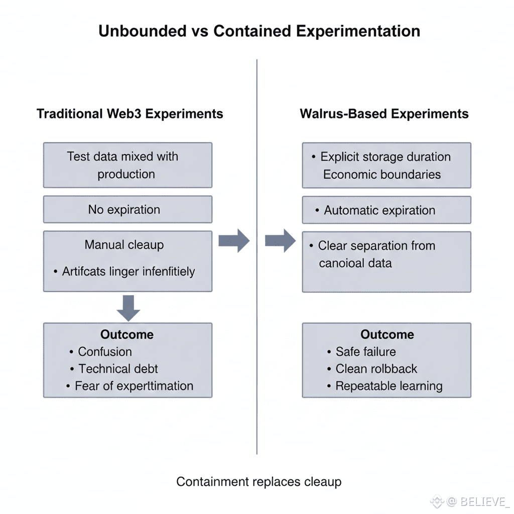 Walrus provides those boundaries—not by locking systems down, but by letting experiments exist without demanding forever.