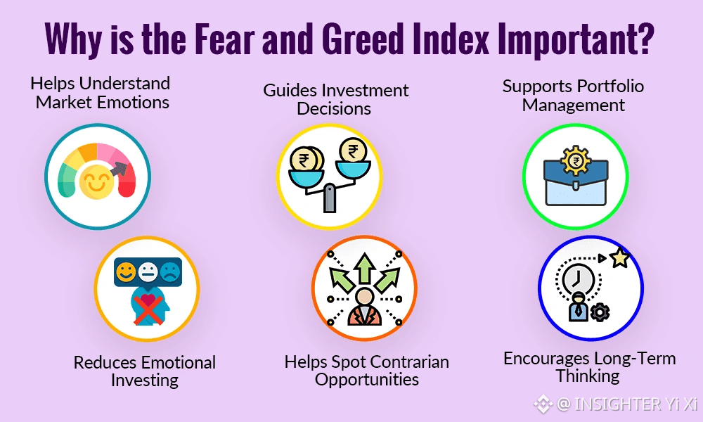 On the opposite side is extreme fear, shown in red. This happens when the market is under heavy selling pressure. Prices fall, confidence drops, and most people panic. Interestingly, this is often where long term opportunities begin to form, because selling is driven more by emotion than value.
