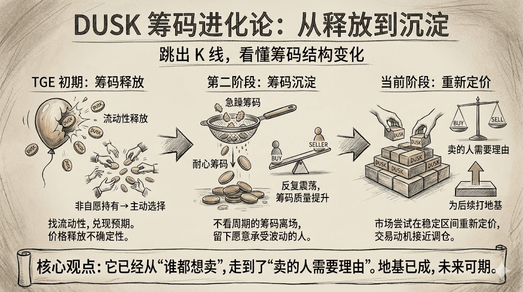 If you only focus on the K-line, it's easy to overlook a more important issue: the people trading DUSK now are not the same as those at the time of the TGE. Price is just the result; what truly determines the subsequent trend is actually the chip structure.
