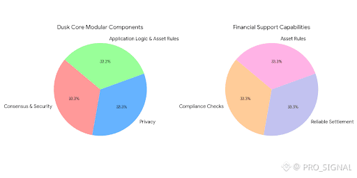 At the core of Dusk is its modular architecture. This means the system is not a single rigid design, but a set of layers and components that work together. One part handles consensus and security, another handles privacy, and others manage application logic and asset rules. This structure makes it easier to support financial products that need clear rules, compliance checks, and reliable settlement. It also means the network can support different types of financial activity without forcing everything into one simple transaction model.