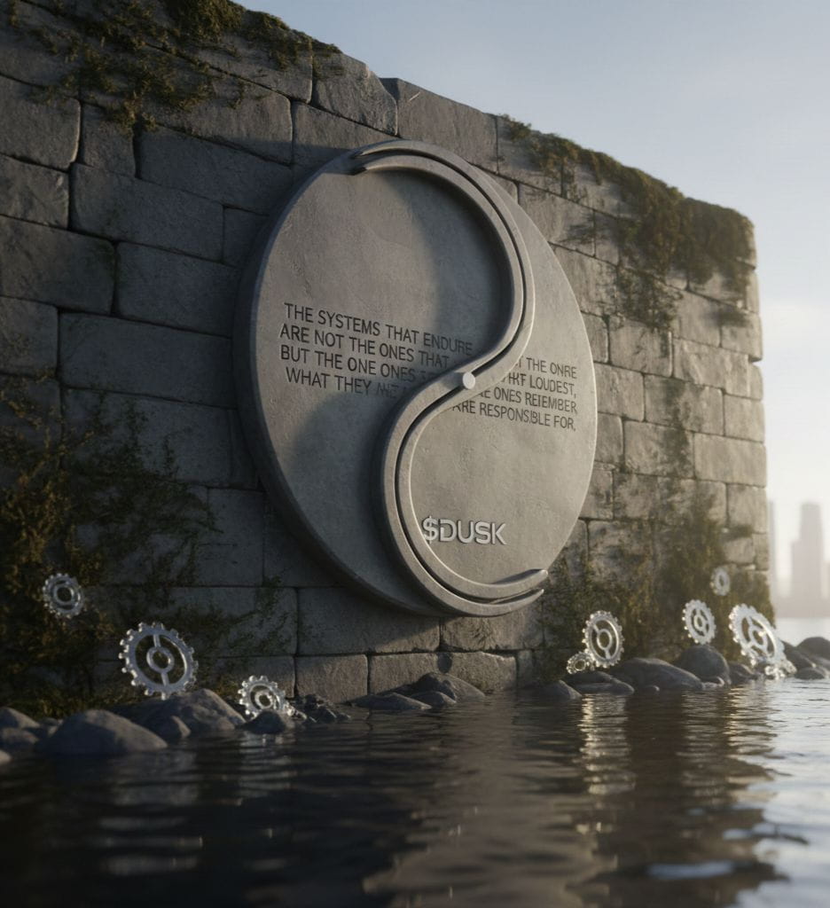 The systems that endure are not the ones that shout the loudest, but the ones that remember what they are responsible for. DUSK $DUSK feels shaped by that understanding. It treats time as an ally, not a threat, and trust as something earned slowly through consistency. In a space still learning how to grow up, that quiet commitment to memory, reliability, and aligned responsibility may be the most lasting contribution of all.