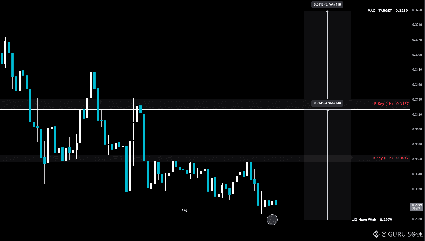 If the setup fully forms and we get a clean entry trigger, I’ll be looking to long it toward 0.3127 (R-Key) as the ideal TP, and 0.3259 as max TP.