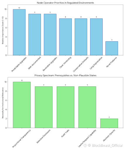 Modularity and separation of concerns—between consensus, execution, and settlement anchoring—are similarly pragmatic choices. Modular systems age better because they localize failure and simplify upgrades. In regulated environments, the ability to upgrade components without system-wide disruption is critical. Node operators care less about architectural elegance than about whether upgrades are predictable, well-documented, and reversible. Clear versioning, conservative defaults, and long deprecation timelines matter more than novel features when systems are expected to run continuously.