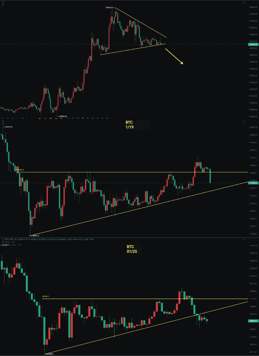 26/01/25 BTC weekly engulfing pattern, the daily line is still in a downward continuation, the upcoming trend is very critical.