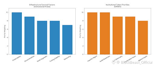 The VANRY token, viewed through an institutional lens, is less about upside narratives and more about liquidity management and exit optionality. Tokens that function as infrastructural assets must support predictable flows, sufficient market depth, and mechanisms for participants to enter and exit without destabilizing the ecosystem. For regulated entities, the ability to unwind positions, account for holdings, and explain exposure to auditors matters more than incentive schematics or speculative appreciation. A token aligned with operational use rather than abstract value capture is more likely to be treated as a tool than as a liability.