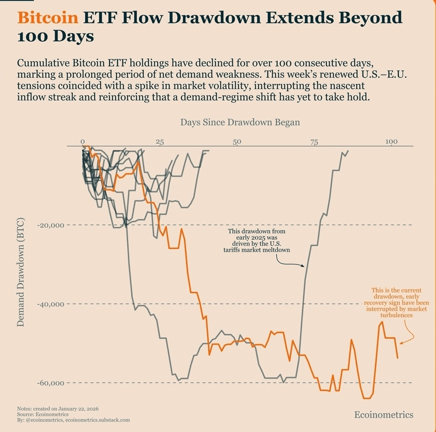 In the United States! The year 2026 began with strong inflows. Strong inflows appeared, but were soon followed by a series of outflows that nearly reversed everything. After a tough end to 2025, the market continues without a clear direction for institutional demand.