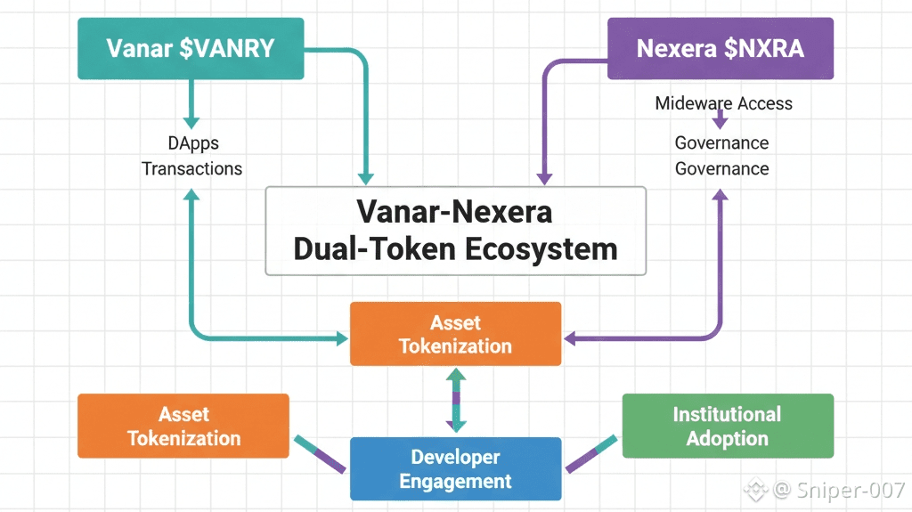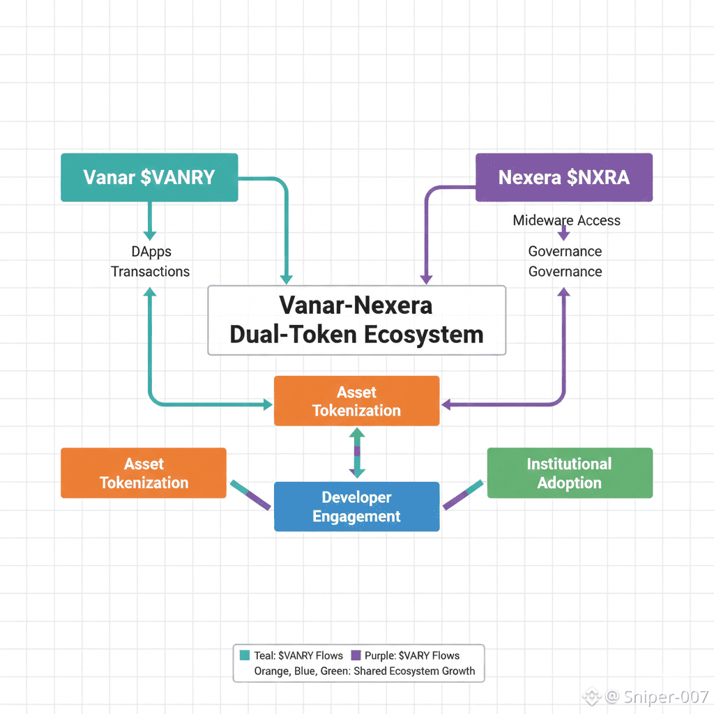 Both Vanar and Nexera ecosystems leverage native tokens to support engagement and growth. Nexera’s $NXRA token enables access to middleware services and governance participation. Meanwhile, Vanar’s VANRY token plays a central role in powering the tokenization process and transactions within the Vanar ecosystem. $VANRY acts as the fuel for decentralized applications built on Vanar and anchors real‑world asset activity.