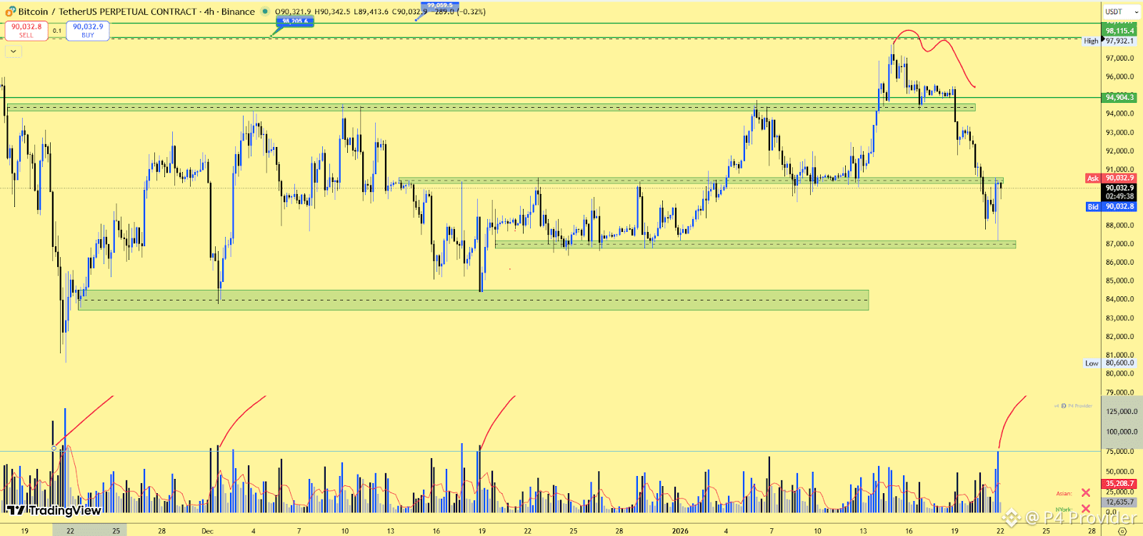 Current Status: $90k has flipped from Support → Resistance. Until we close a 4H candle above this green box, the bears are technically in control of the immediate trend.