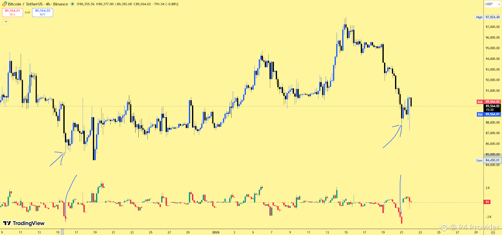 Spot Demand: While derivatives traders were getting wrecked, Spot CVD (Cumulative Volume Delta) showed aggressive buying at the $87k lows (spike in delta volume and absorbed by next one candle ). Smart money used the Tariff panic to fill their bags.