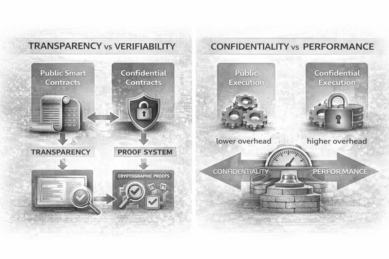 Confidential smart contracts are designed to execute on-chain logic without exposing sensitive data. While this concept addresses important privacy concerns it also introduces technical trade-offs that differ significantly from traditional transparent smart contracts. Understanding these trade-offs is essential when evaluating privacy-oriented blockchain architectures.