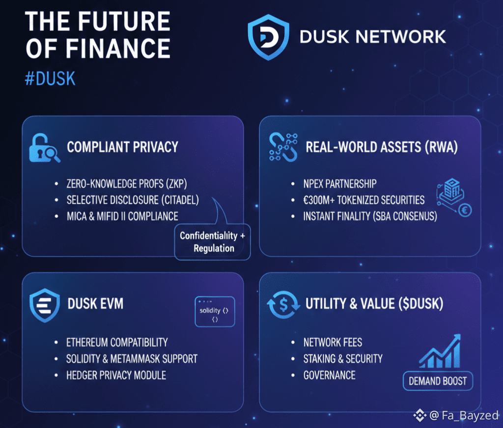 One of the most significant catalysts for the #Dusk ecosystem in 2026 is its partnership with NPEX, a licensed Dutch stock exchange. This is a pipeline for bringing over €300 million in regulated securities directly on-chain. By using the infrastructure, NPEX can facilitate the issuance, trading, and settlement of tokenized assets with instant finality. This is made possible by the Segregated Byzantine Agreement (SBA) consensus mechanism, which ensures that once a transaction is confirmed, it is irreversible—a mandatory requirement for any serious financial settlement layer.