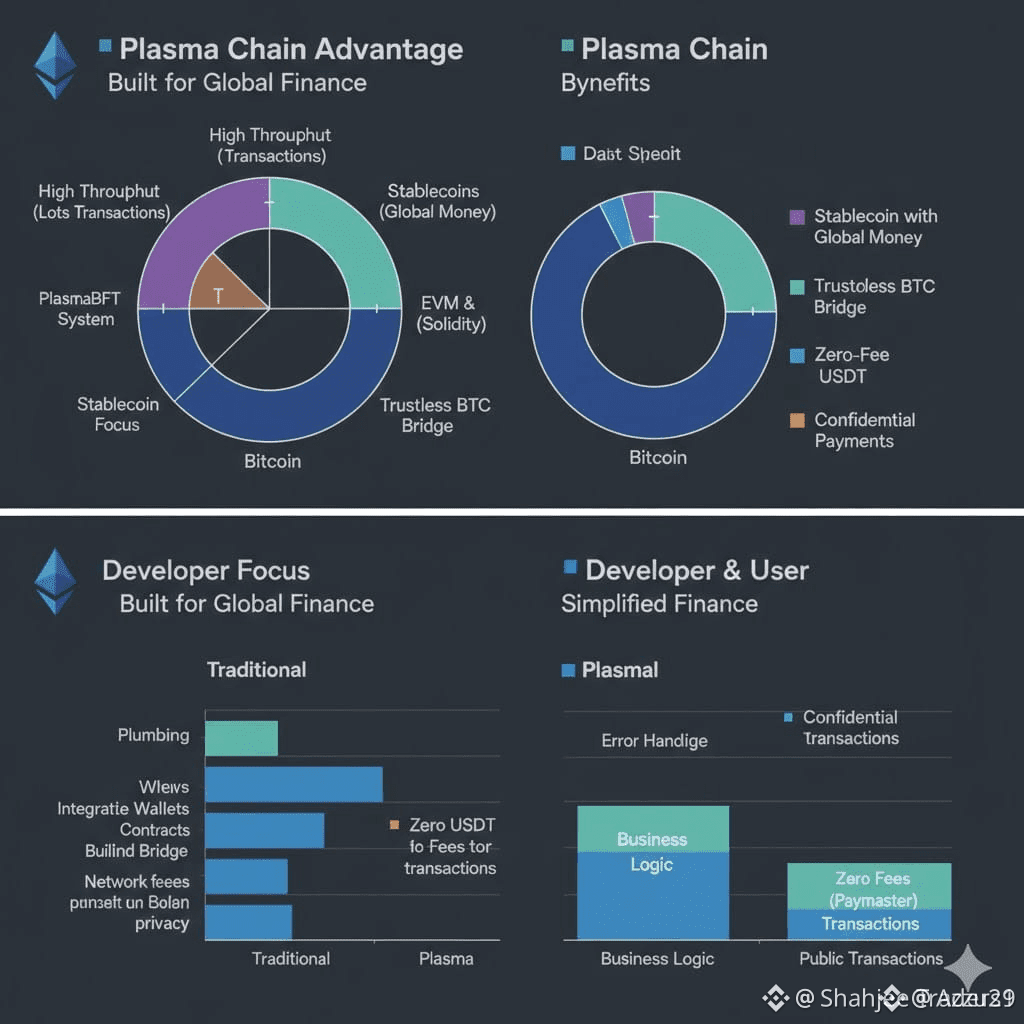 In summary, Plasma Chain combines high throughput, deterministic execution, zero-fee stablecoin transfers, confidential payments, and multi-asset integration into a cohesive platform. Its design aligns operational reliability with developer flexibility, providing a predictable and efficient foundation for decentralized financial applications.