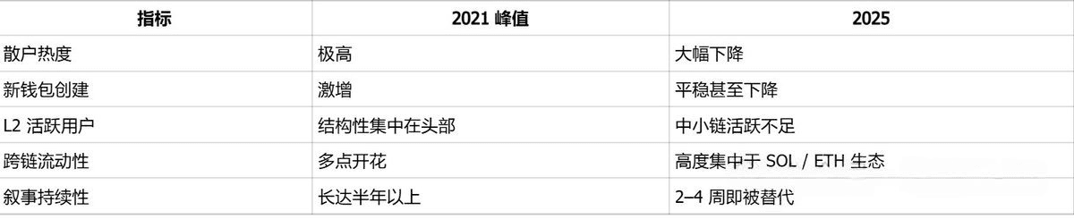 User structure changes: a significant loss of retail investors, with the ability to absorb far lower than in the past two cycles.