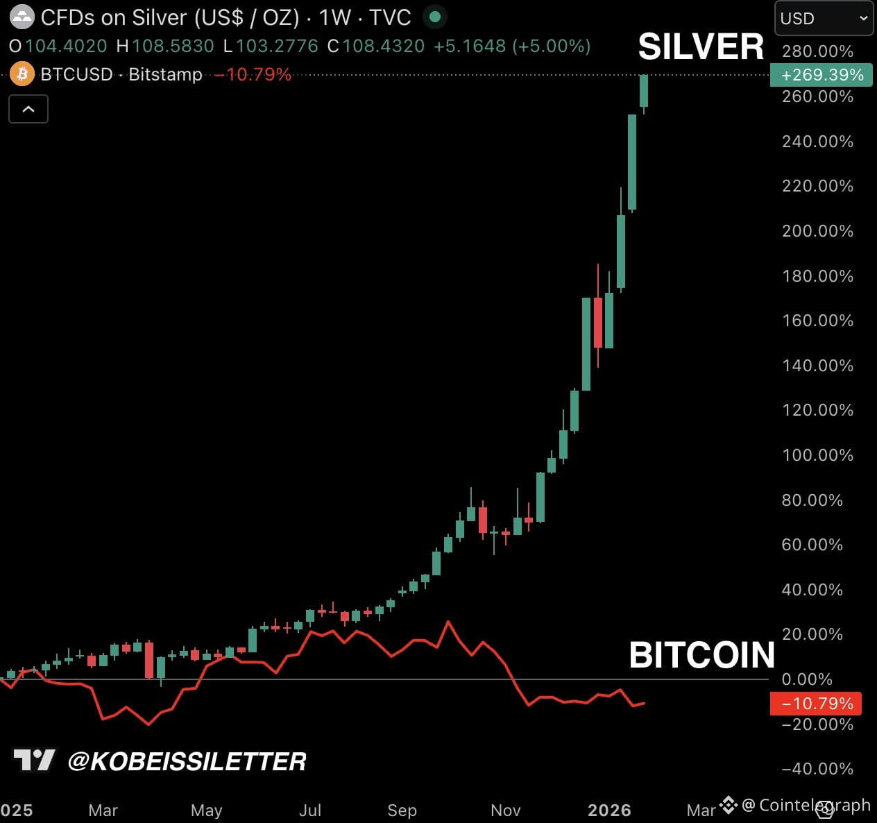 “Silver prices are now outperforming Bitcoin by one of their widest margins on record. In ~13 months, Silver is up +270% as Bitcoin has fallen -11%. This makes Silver's market cap 3.5 TIMES larger than Bitcoin. The world is waiting on crypto.”