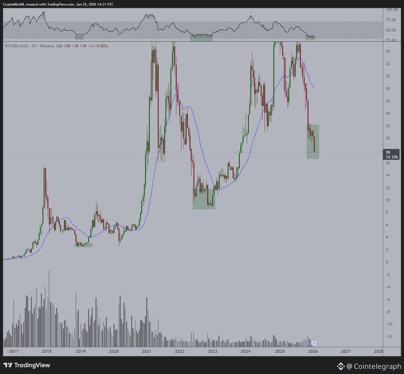 “Bitcoin vs. Gold is the cheapest it has ever been. At least, the gap between the two has never been this big in terms of fair value. The 2-Week RSI is the lowest ever. Lower than in 2022, lower than in 2018,” he wrote Sunday.