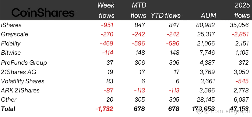 Bitcoin and Ether lead outflows with $1.72 billion combined