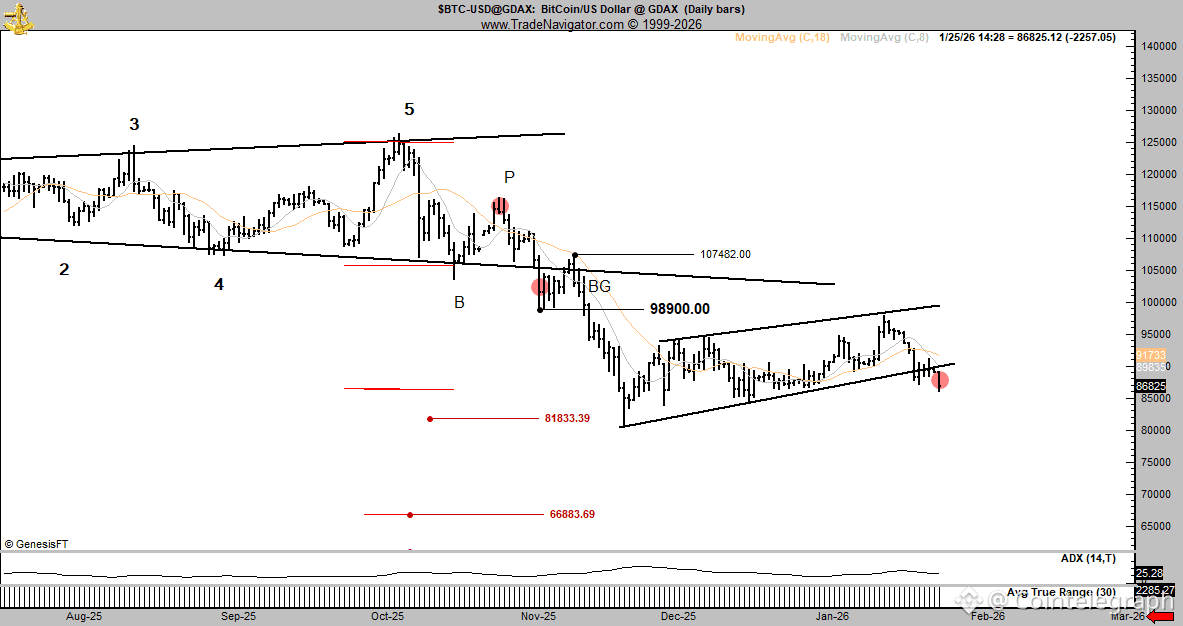 Brandt’s chart points to more downside risk if the price does not reclaim $93,000 level as support.