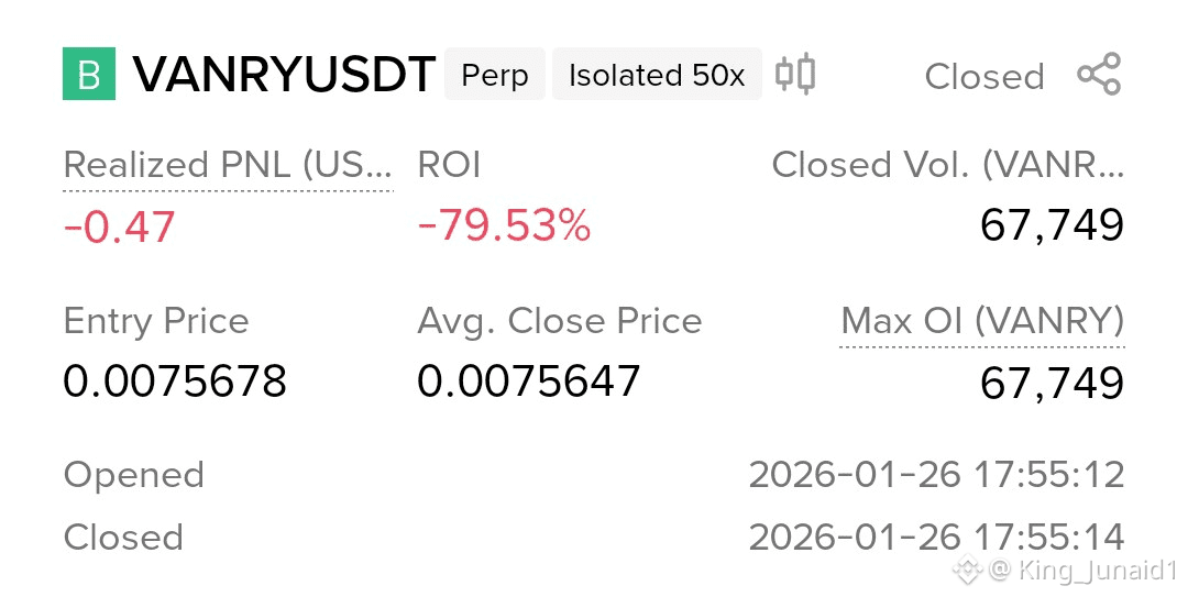I am still bullish on @Vanarchain because of their AI native tech and upcoming Dubai events, but I’ve learned my lesson. Don't use 50x leverage on $VANRY without a Stop Loss. High leverage gives you zero room for the natural price "wicks" that happen in crypto. Next time, I’m sticking to lower leverage to give my trade room to breathe!