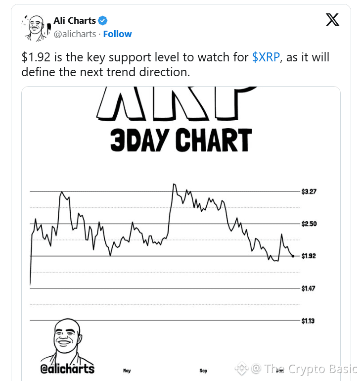 Meanwhile, XRP is trading around $1.88, closely aligning with the $1.92 level that analyst Ali Martinez identifies as critical support.