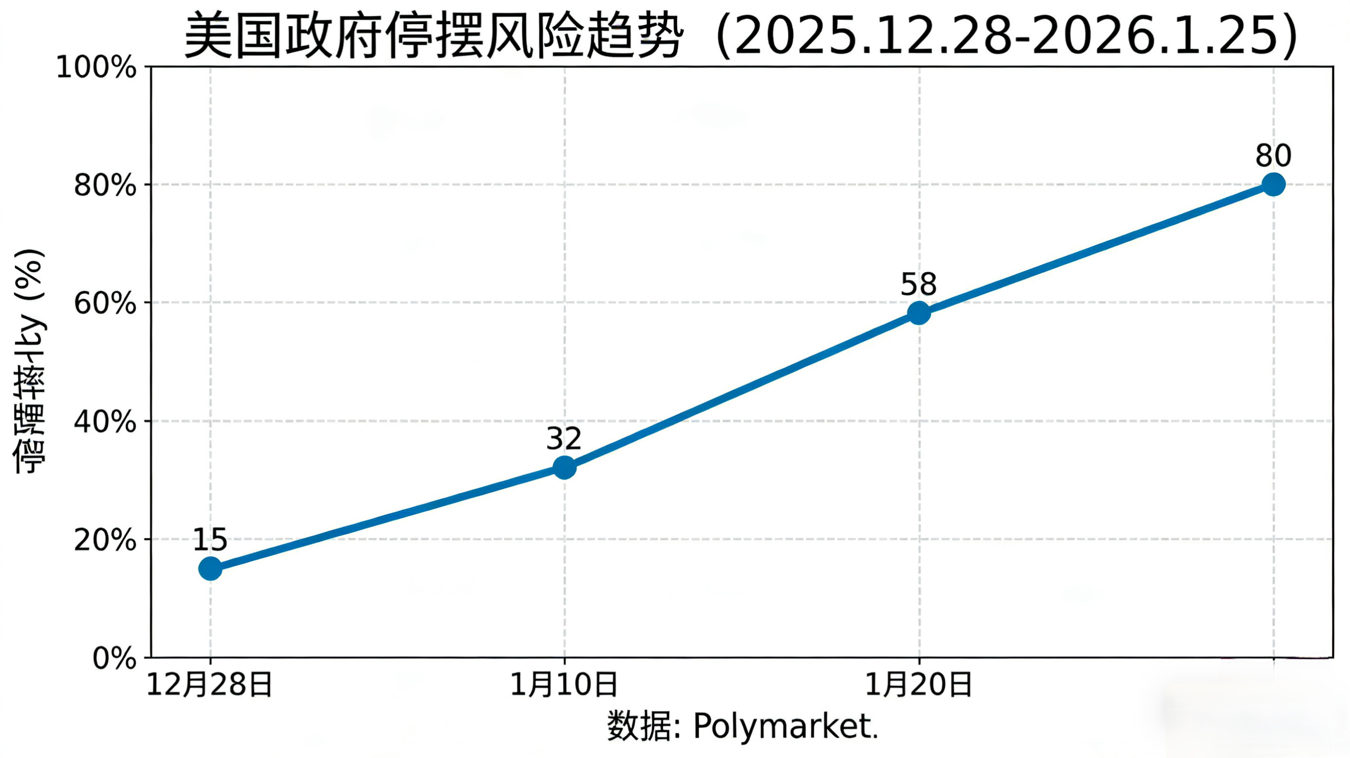 Due to political games, the Democratic Party opposes the funding proposal from the Department of Homeland Security. Polymarket data shows that on January 30, the risk of a U.S. government shutdown reached 80%. A shutdown would lock hundreds of billions of dollars in the Treasury's general account; a 43-day shutdown in October 2025 had withdrawn $200 billion in liquidity, while Bitcoin is highly sensitive to liquidity, and the risk of shutdown plummeted from $92,000 to below $88,000 within 24 hours.