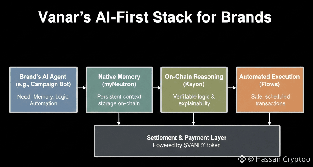 This infrastructure-first methodology clarifies a vital brand concern: the point of value accumulation. Conventional blockchains typically position AI as an external layer, resulting in operational bottlenecks and isolated data pools. As detailed in Vanar chain whitepaper that they integrates these functionalities into the base layer. For a brand, this means an AI agent managing a promotional campaign can natively remember user preferences, logically decide on reward distribution, and automatically execute transactions without constantly bridging between insecure off chain databases and an on chain settlement layer. The efficiency gain is in the reduction of points of failure, not just raw transaction speed. It turns the blockchain from a ledger into an active participant in the workflow.