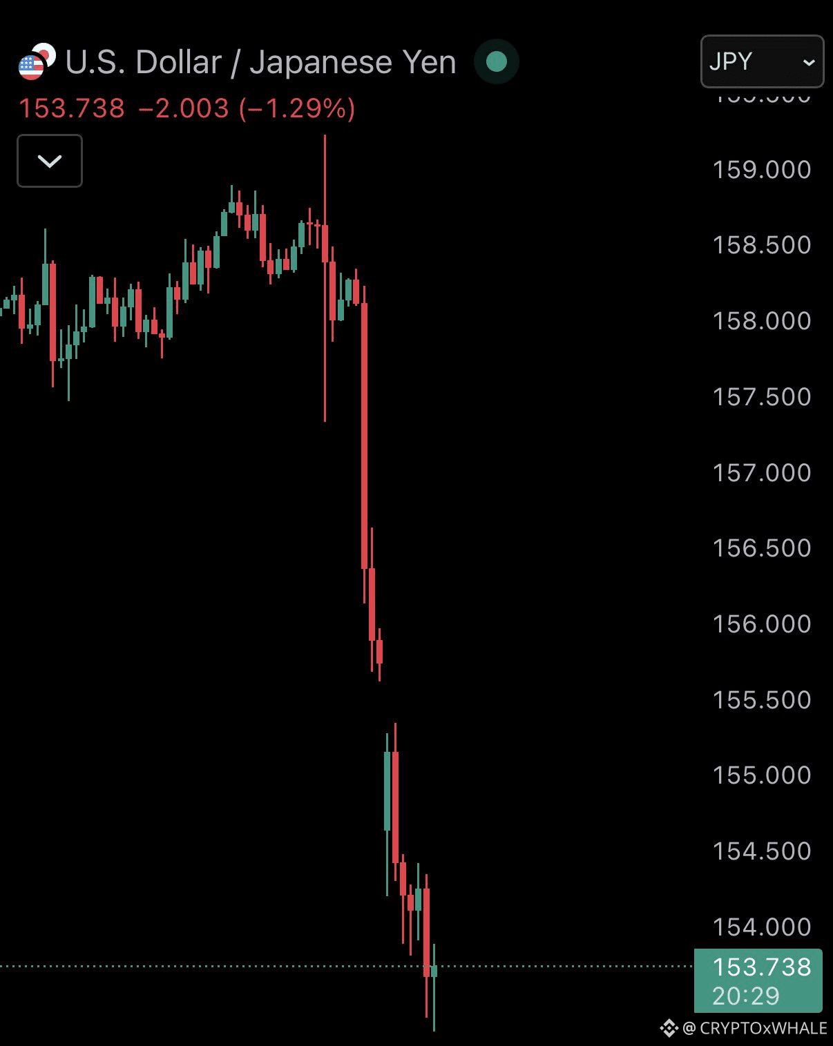 💱 USD/JPY collapsed from 260 → 120
