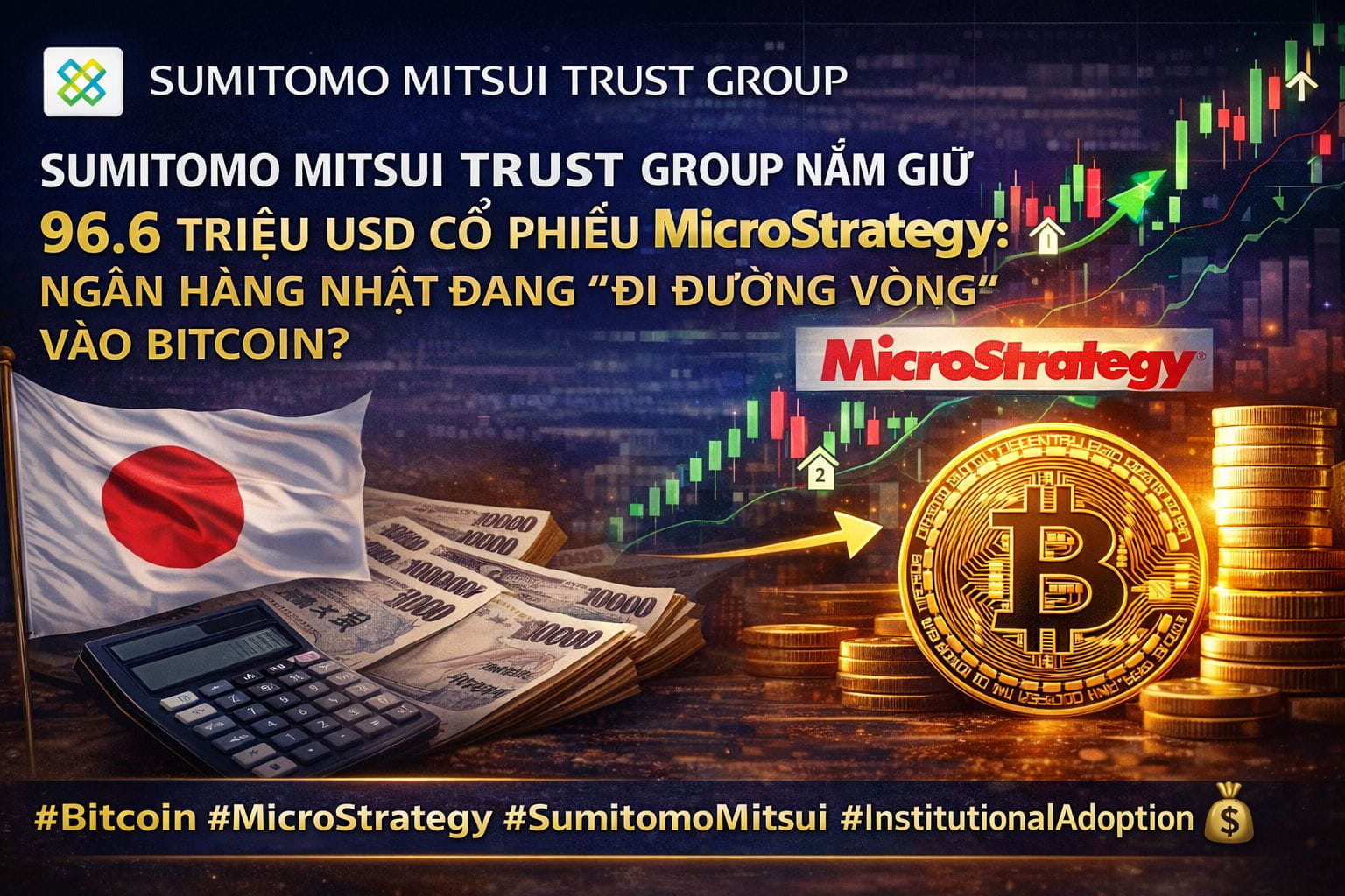 Tập đoàn tài chính hàng đầu Nhật Bản Sumitomo Mitsui Trust Group (SMTG) vừa công bố đang nắm giữ 96.6 triệu USD cổ phiếu MicroStrategy (MSTR) – công ty được xem là “proxy Bitcoin” lớn nhất thế giới.