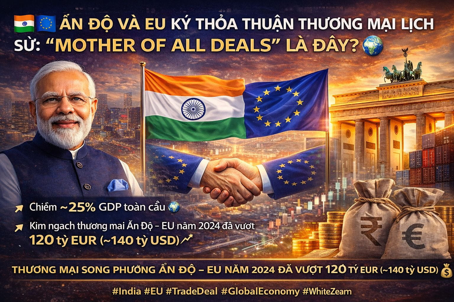 Ấn Độ và EU vừa ký FTA lịch sử, được Thủ tướng Modi gọi là “mother of all deals”.