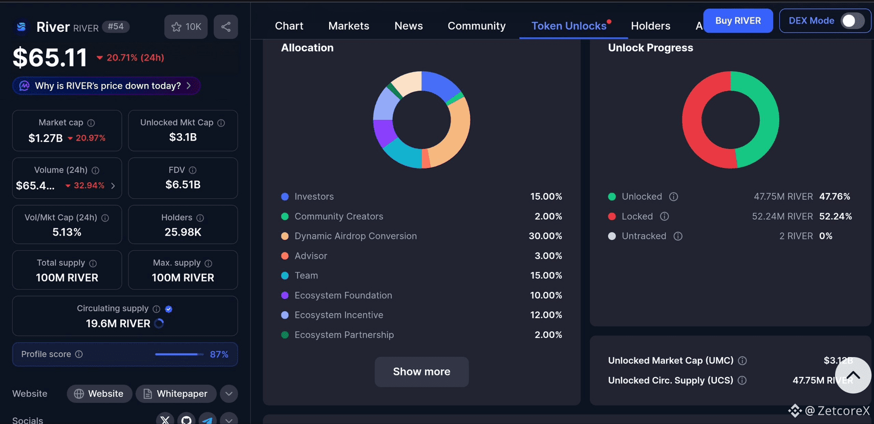 #RIVER #TokenUnlock #OnChainAnalysis #CryptoRisk #ProfessionalTrading #BinanceSquare #DYOR