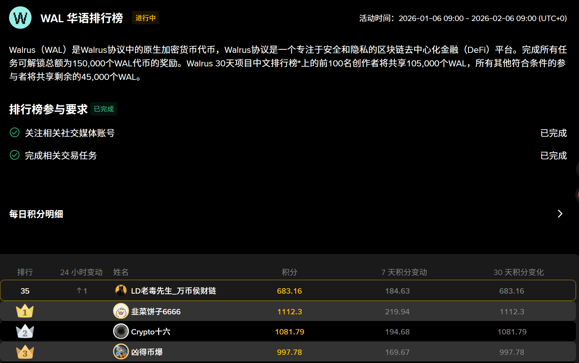 🔶 WAL is the Walrus Protocol, a new star in the storage track that can be participated in, and is also one of the recommendations. 🔶 Key point: 🔶