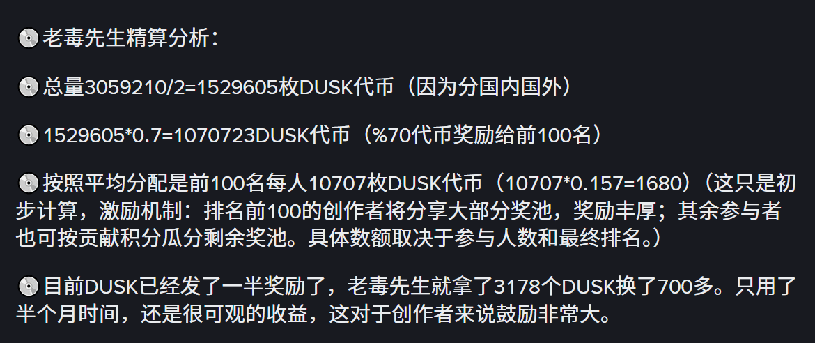 The Dusk project party is indeed generous, issuing thousands of U rewards in advance, with technical innovations like Confidential Security Contracts (XSC) and the Phoenix 2.0 trading model, supporting privacy and anonymity.