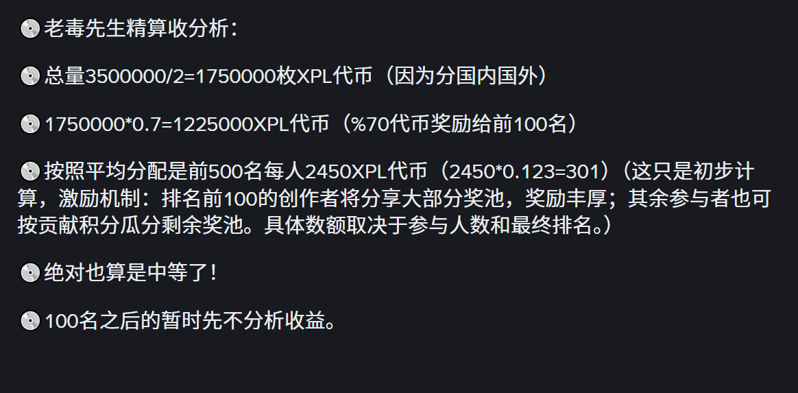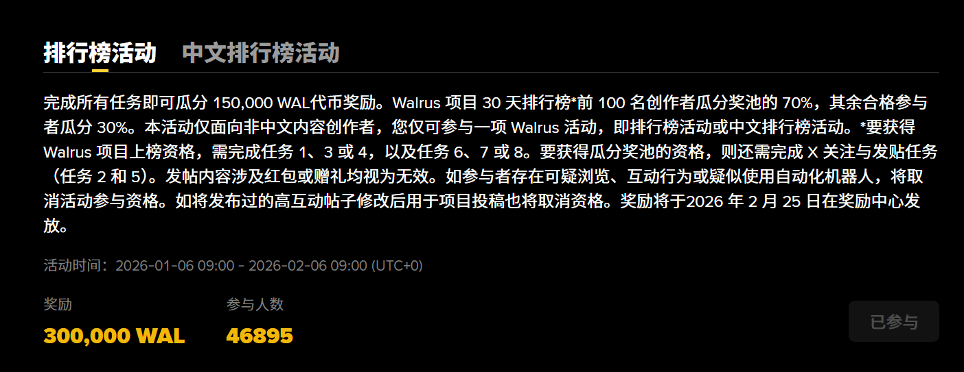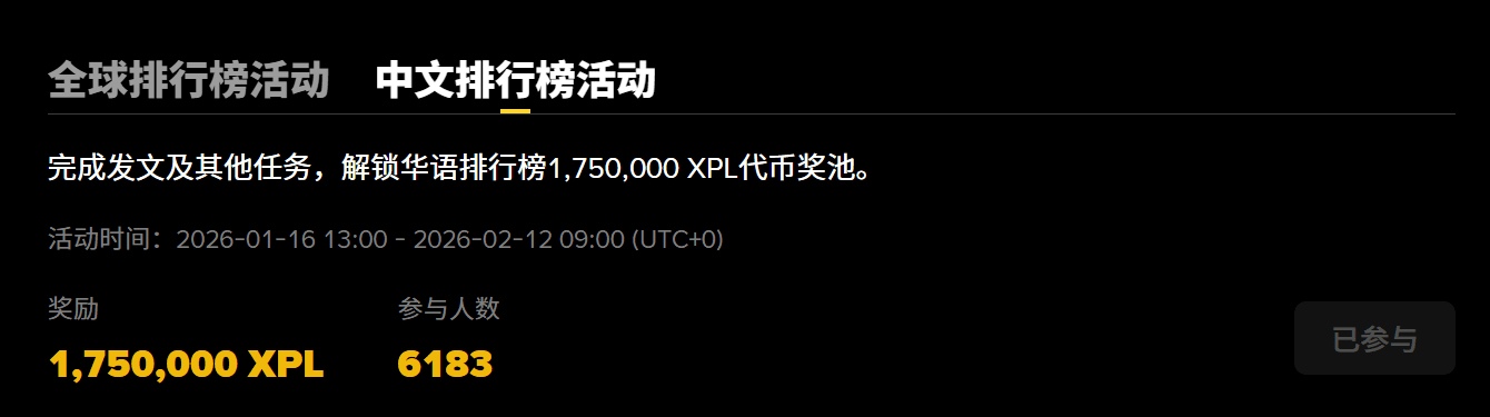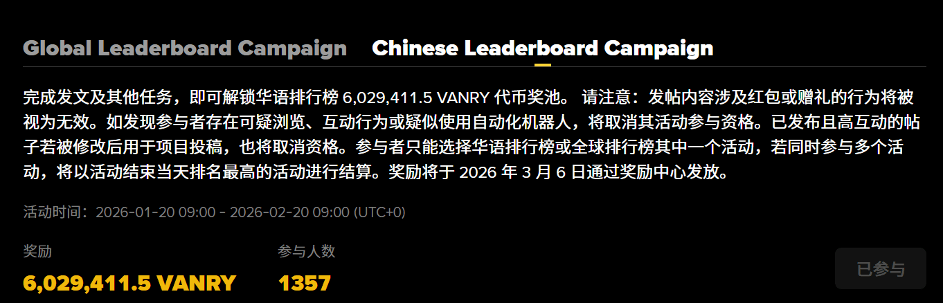 🔶🔶 The mechanism is to complete writing tasks daily to earn points. Daily long articles score 10 points, short articles score 5 points, and participation is mandatory. Sharing next door should score 10 points. In-depth research experience: To analyze the project more thoroughly, you can choose small trades to personally experience its token economic model. This can make your analysis article more persuasive. (Please note: Cryptocurrency trading is extremely risky, any trading decisions must be independently judged and at your own risk.) The top 100 on the leaderboard will be rewarded with 70% tokens, with the remaining rewards distributed proportionally. The official said that rewards will be issued on February 25, 2026.