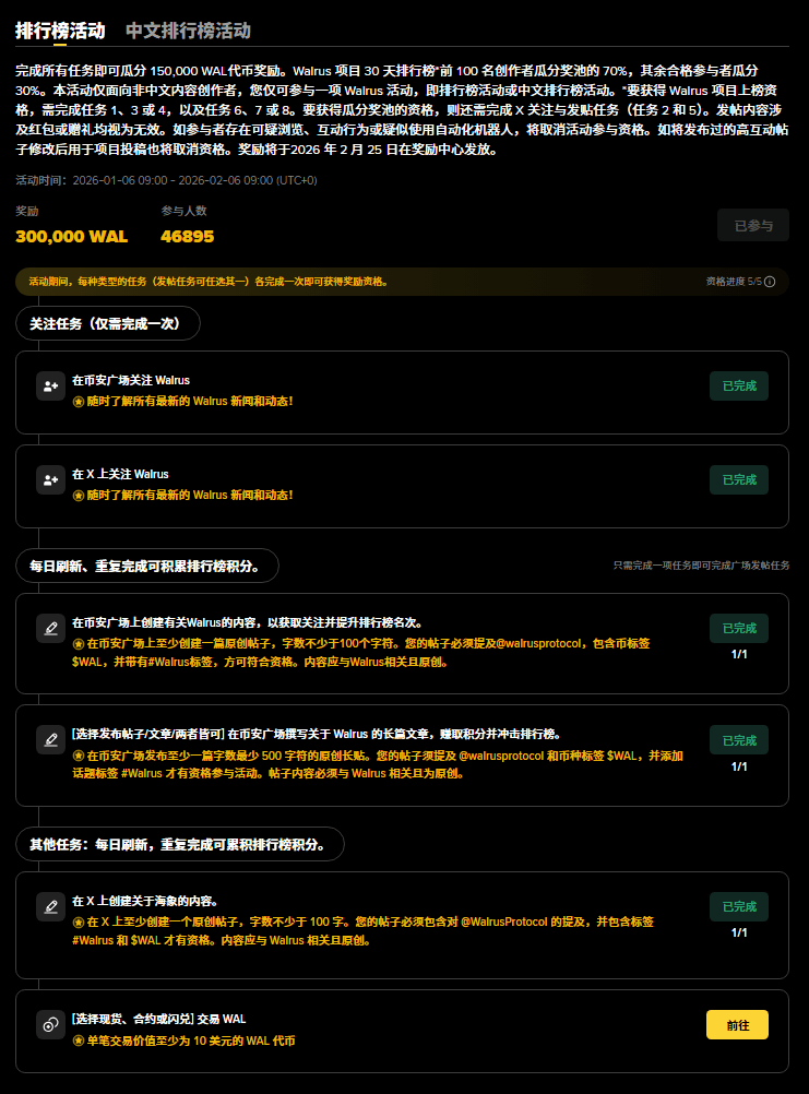 🔶 Please open the Binance APP, switch to your 'Square' tab, find the 'Creator Center' or 'Task Platform' icon in the upper right corner or sidebar, click in to see the ongoing activity list, such as Dusk, XPL, Vanarchain, Walrus tasks, and so on.