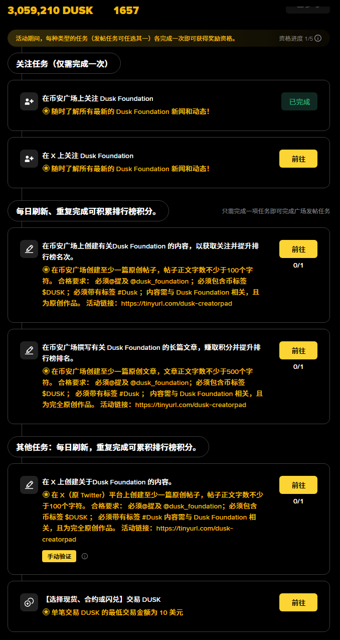 🔶 $DUSK Task ⭐️⭐️⭐️⭐️⭐️ Highly recommended participation