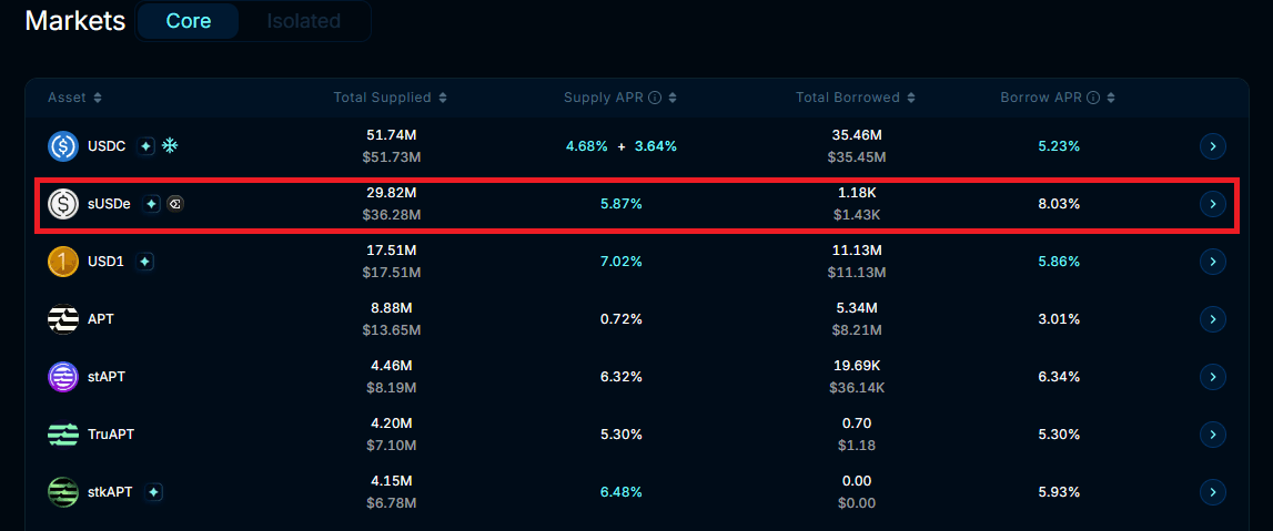 In March 2025, sUSDe supported Aptos and integrated into the Echelon lending market.