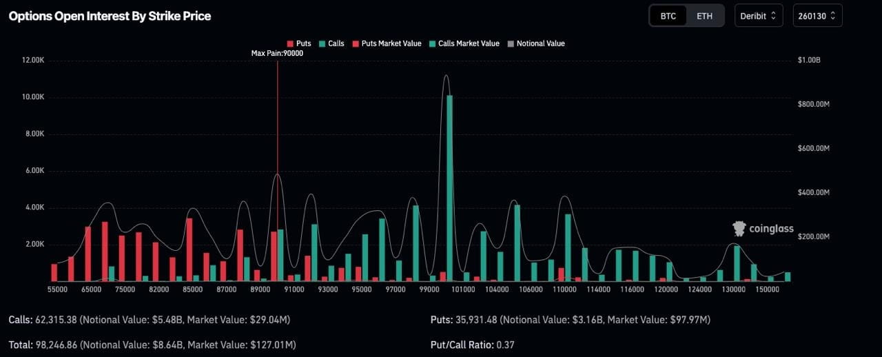 If BTC cannot hold the $90K level before expiration, I lean towards a scenario of stronger fluctuations rather than a calm sideways movement.