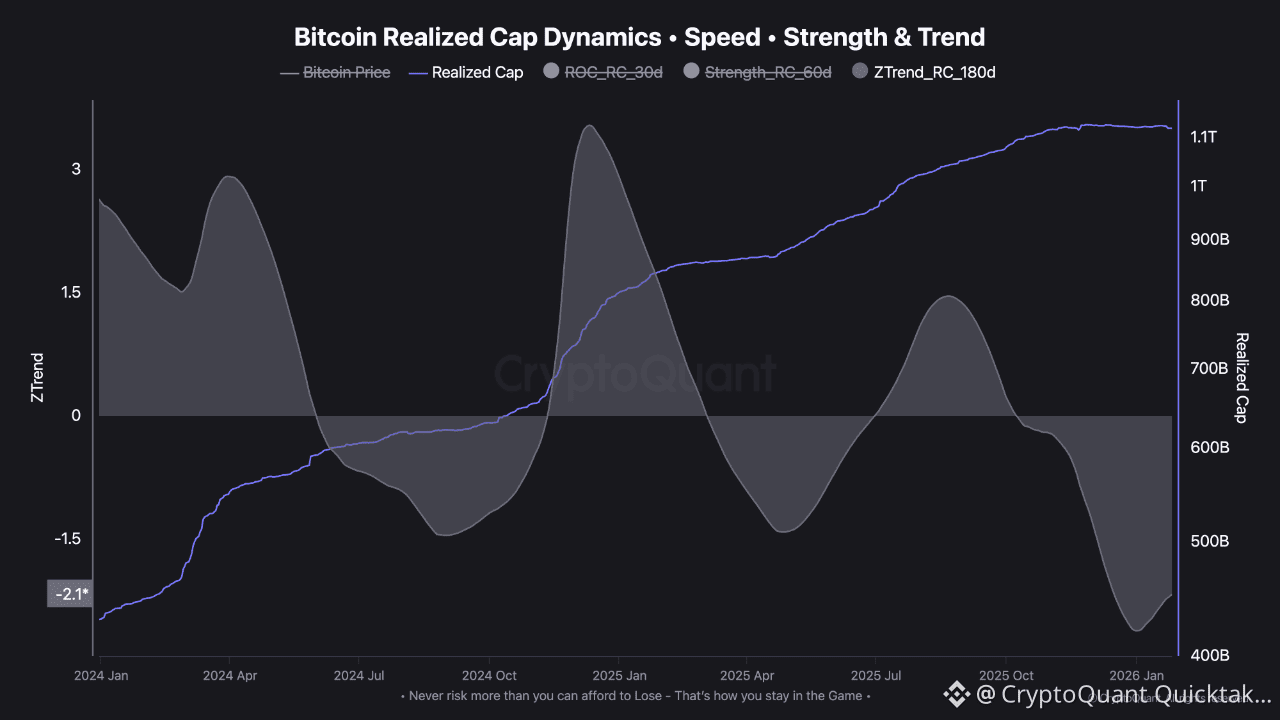 Current flow and on-chain metrics suggest Bitcoin is losing momentum, as new capital inflows slow rather than capital exiting the market.